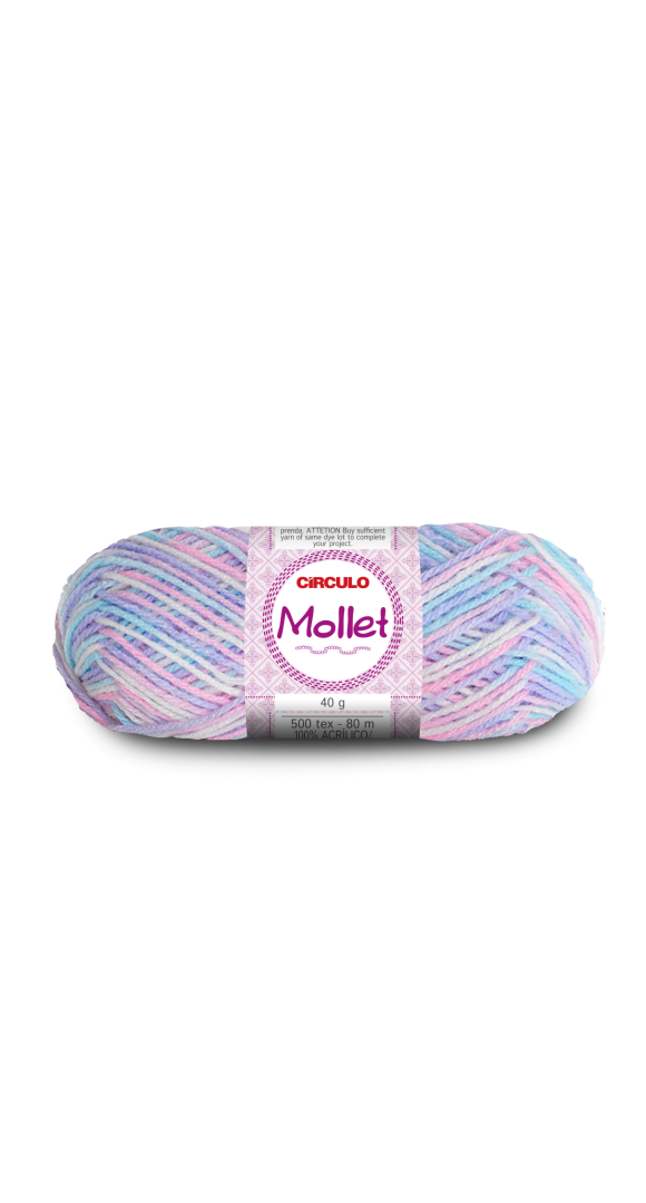 Clássico fio de acrílico ideal para diversas formas de artesanato, tanto decoração quanto moda. Além da versatilidade, Mollet destaca-se cartela de cores variadas, que incluem opções lisas, multicolors, fibra negra e néon.